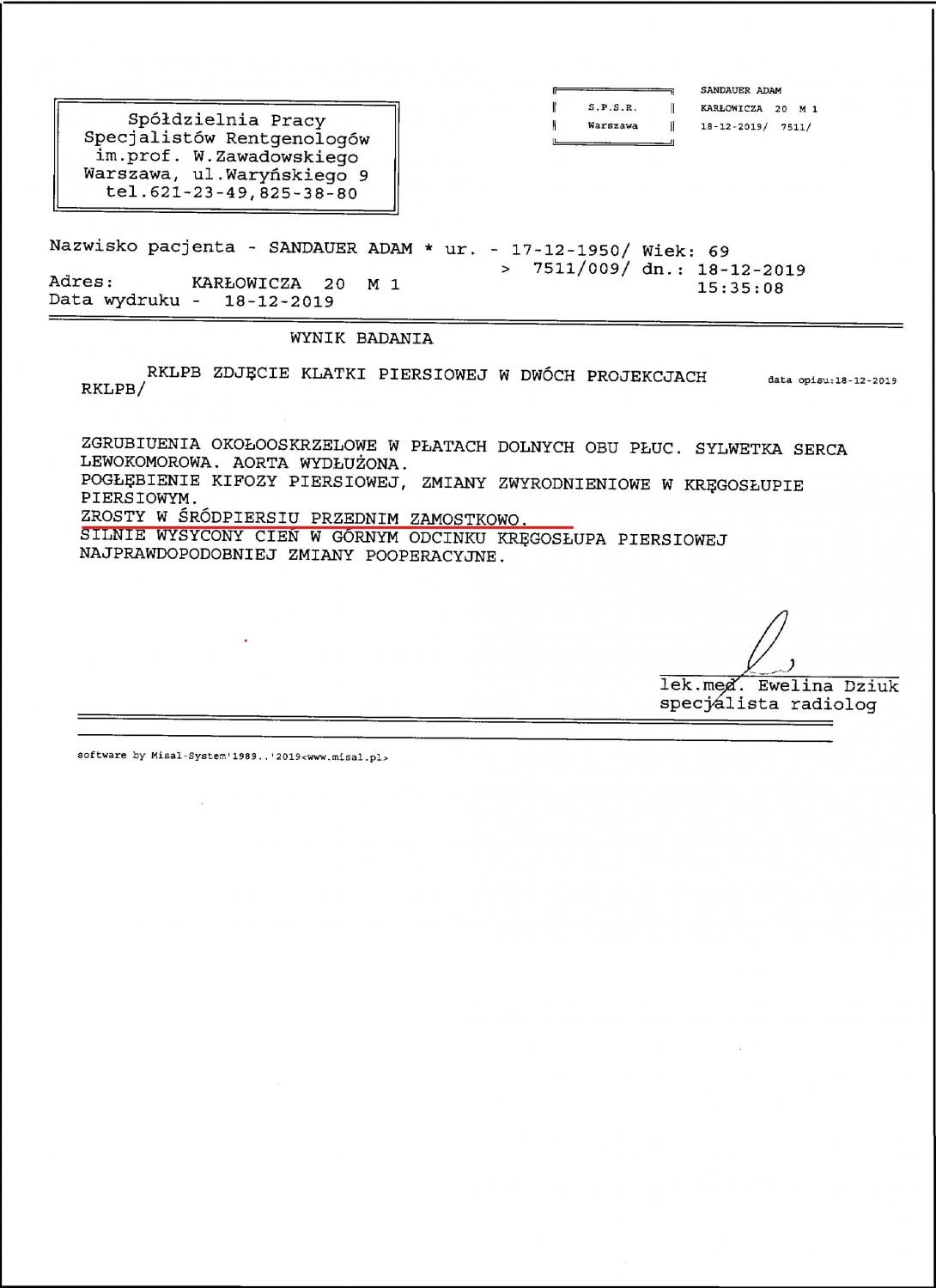 Ponieważ po tygodniu nadal kasłałem zrobiłem badanie RTG. Oczywiście widoczne zrosty sugerują przebyte zapalenia płuc.